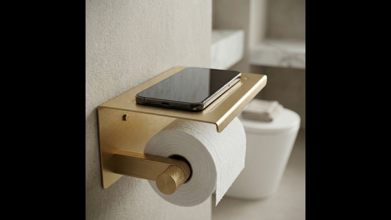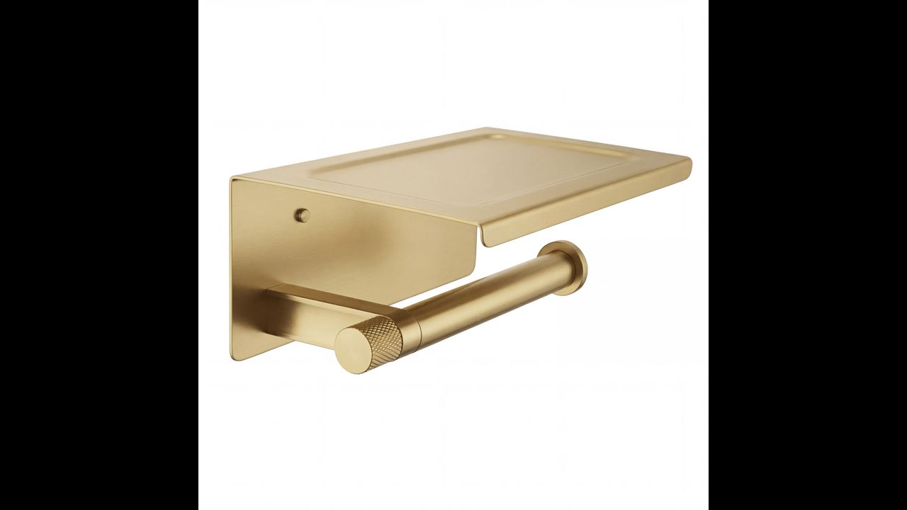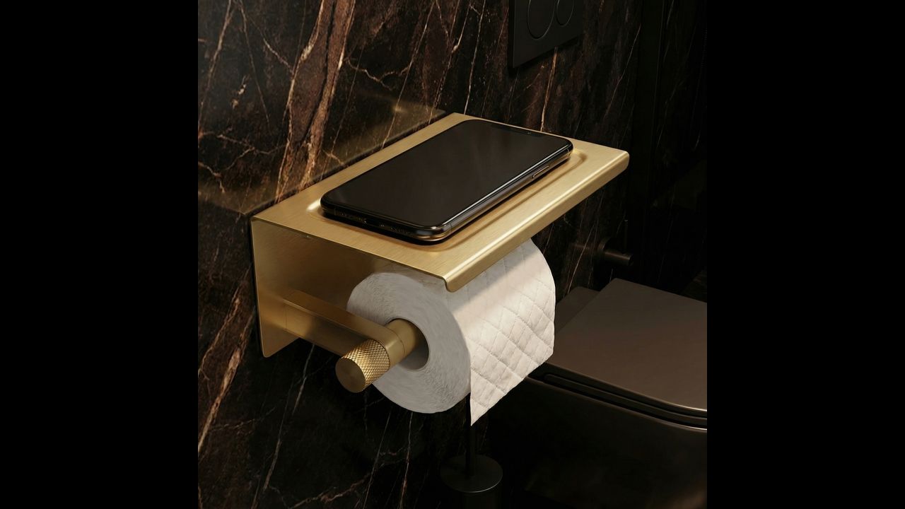 Избирайки държача за хартия с етажерка Ori Четкано Злато, вие залагате на идеалната комбинация от модерен дизайн и изключително полезна функционалност.