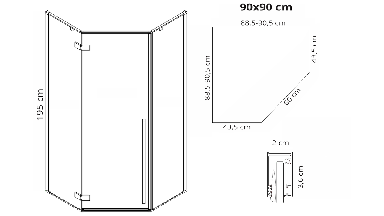Стилната душ кабина Rea Diamond Gold с размери 90×90 cm е изработена от безопасно, прозрачно закалено стъкло. Моделът е подходящ за монтаж на пода или в душ-кабина.