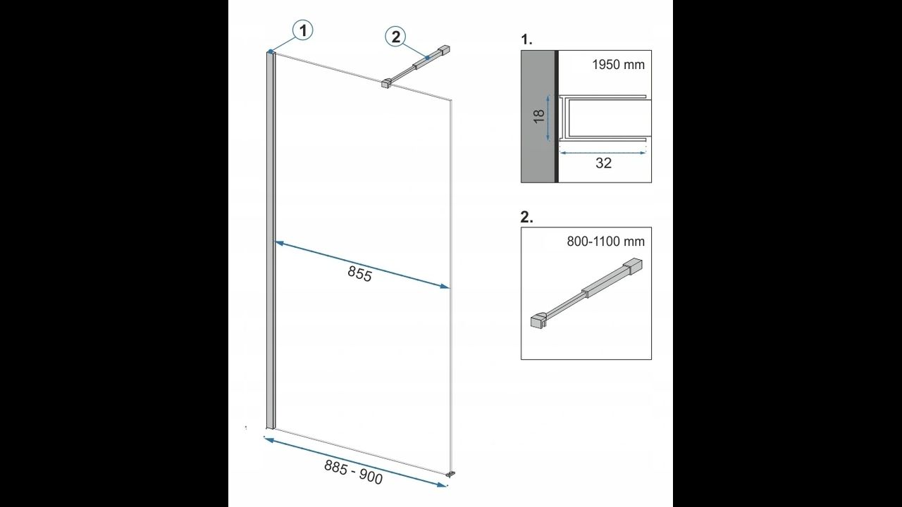 Рафтът трябва да се отреже до ширината на стъклото на душа преди монтажа, максималната дължина на рафта е 120 см. Монтажът е много интуитивен, просто затегнете винтовете, които държат рафта на желаната височина.