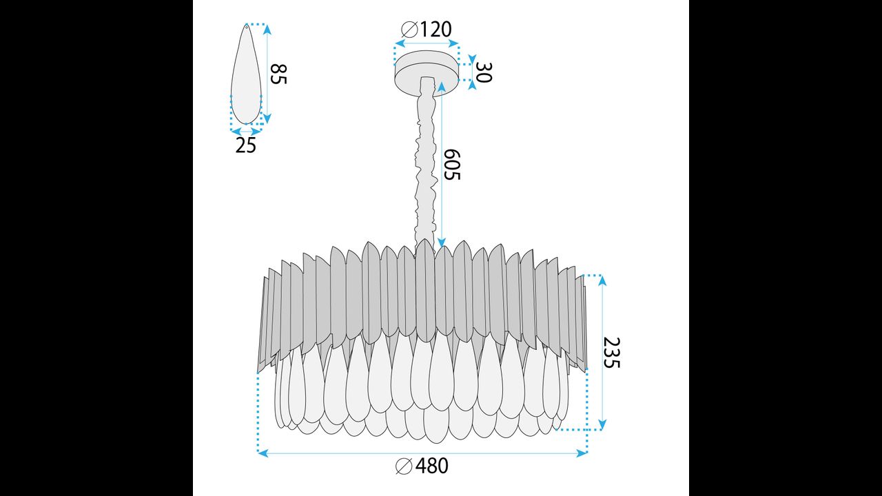 Това е предложение, което се вписва отлично в интериори glamour, modern classic и съвременни пространства с декоративен акцент. Лампата е предназначена за самостоятелен монтаж, а конструкцията ѝ е проектирана така, че след окачване да се превърне в впечатляваща светлинна точка, съчетаваща осветителна функция с ясно изразена декоративна роля.