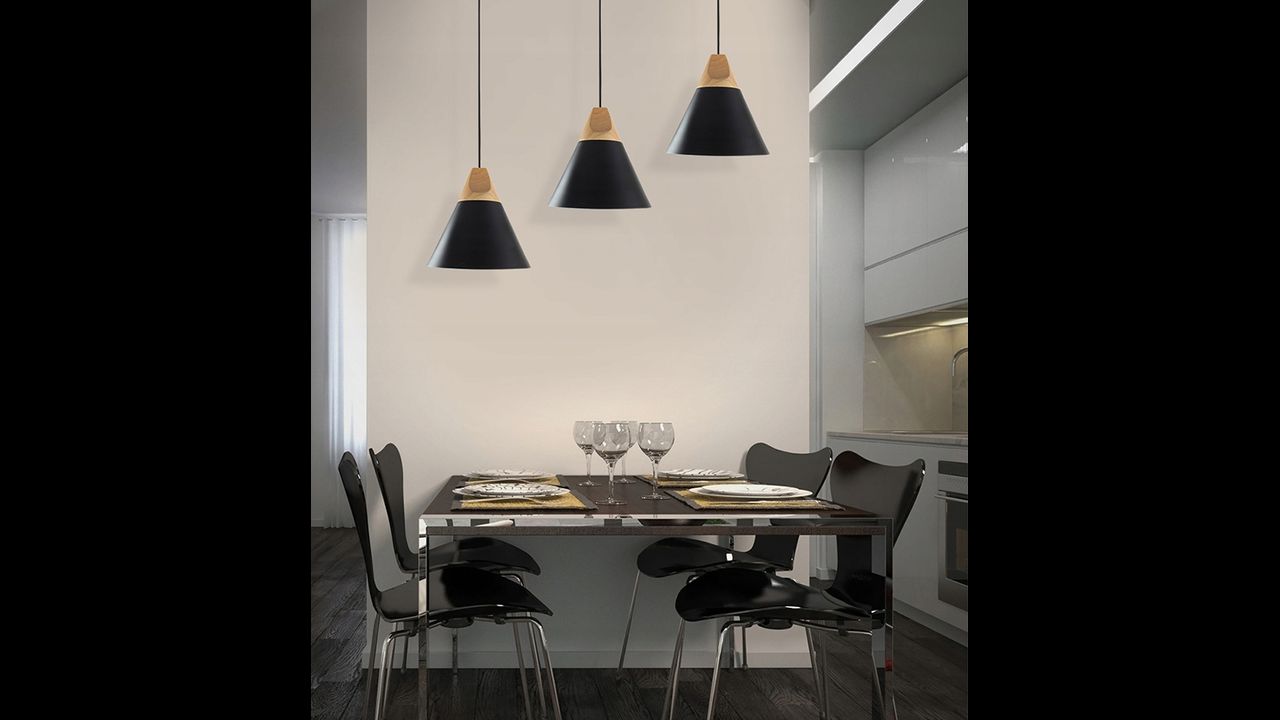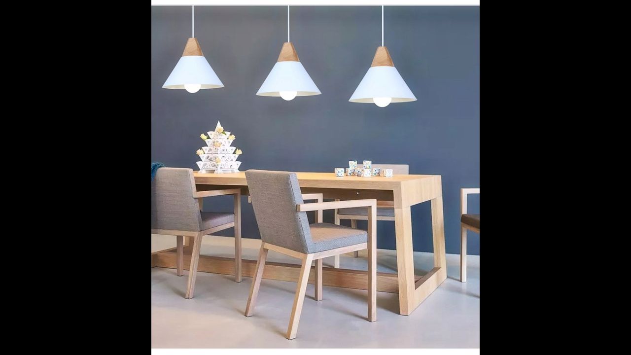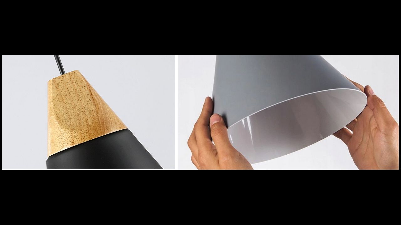 Лампата е изработена от дърво в комбинация с метал и метална решетка на тавана. Лампата е с най-разпространената резба, предназначена за крушка E27. Дължината на кабела може да се регулира в зависимост от помещението или разположението.