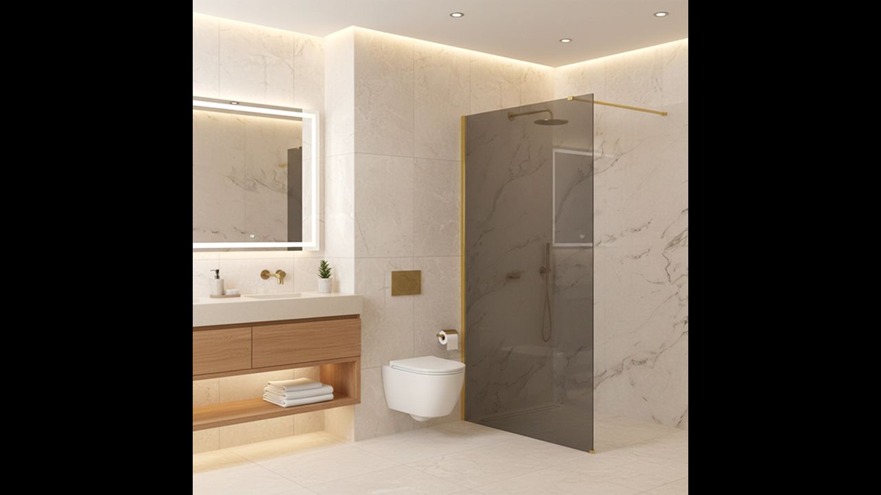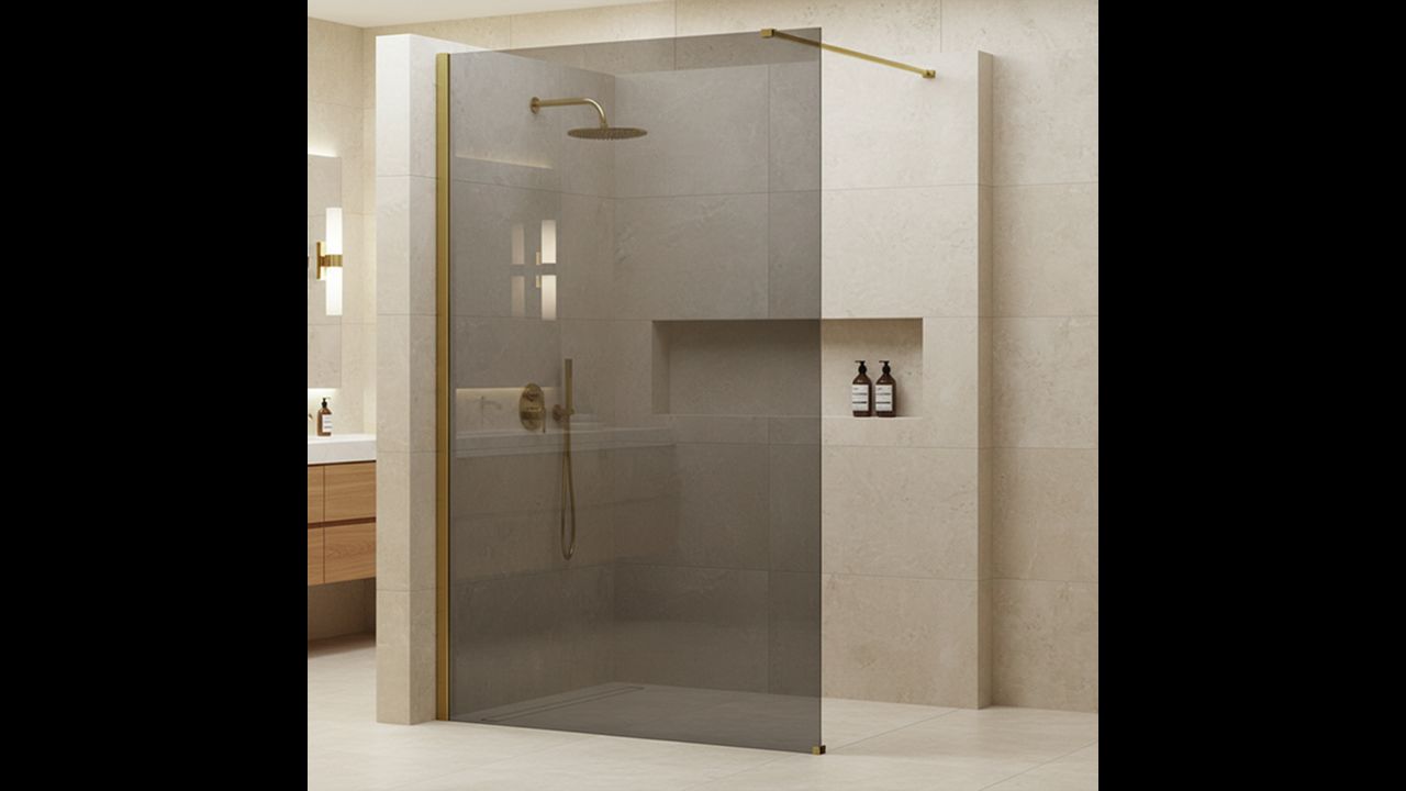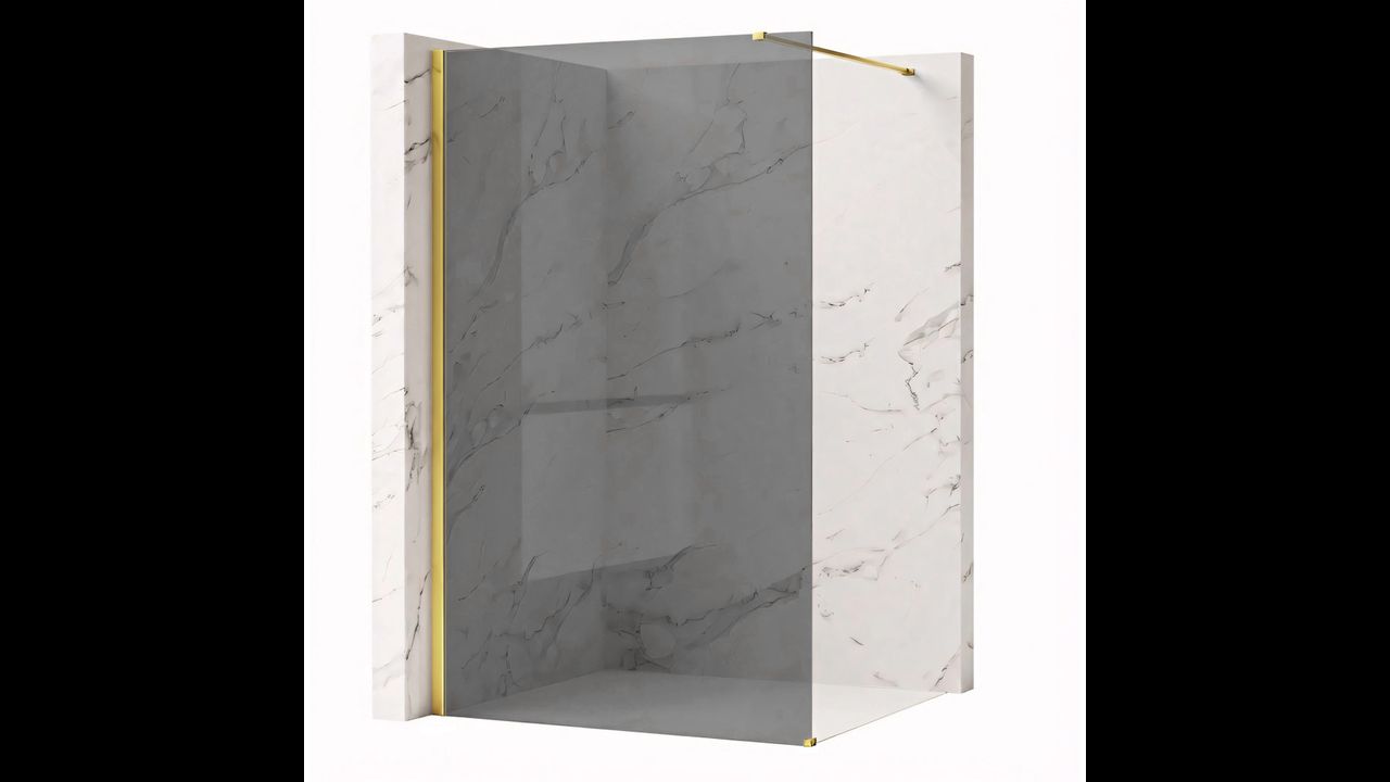Подчертайте уникалния характер на банята си, като изберете душ преграда walk-in Rea Flexi с сиво стъкло и профили в цвят злато гланц. Това изтънчено съчетание на затъмнено графитено стъкло с блестящо покритие придава на интериора модерна елегантност. Конструкцията от здраво закалено стъкло 8 мм гарантира безопасност и дълготрайност.