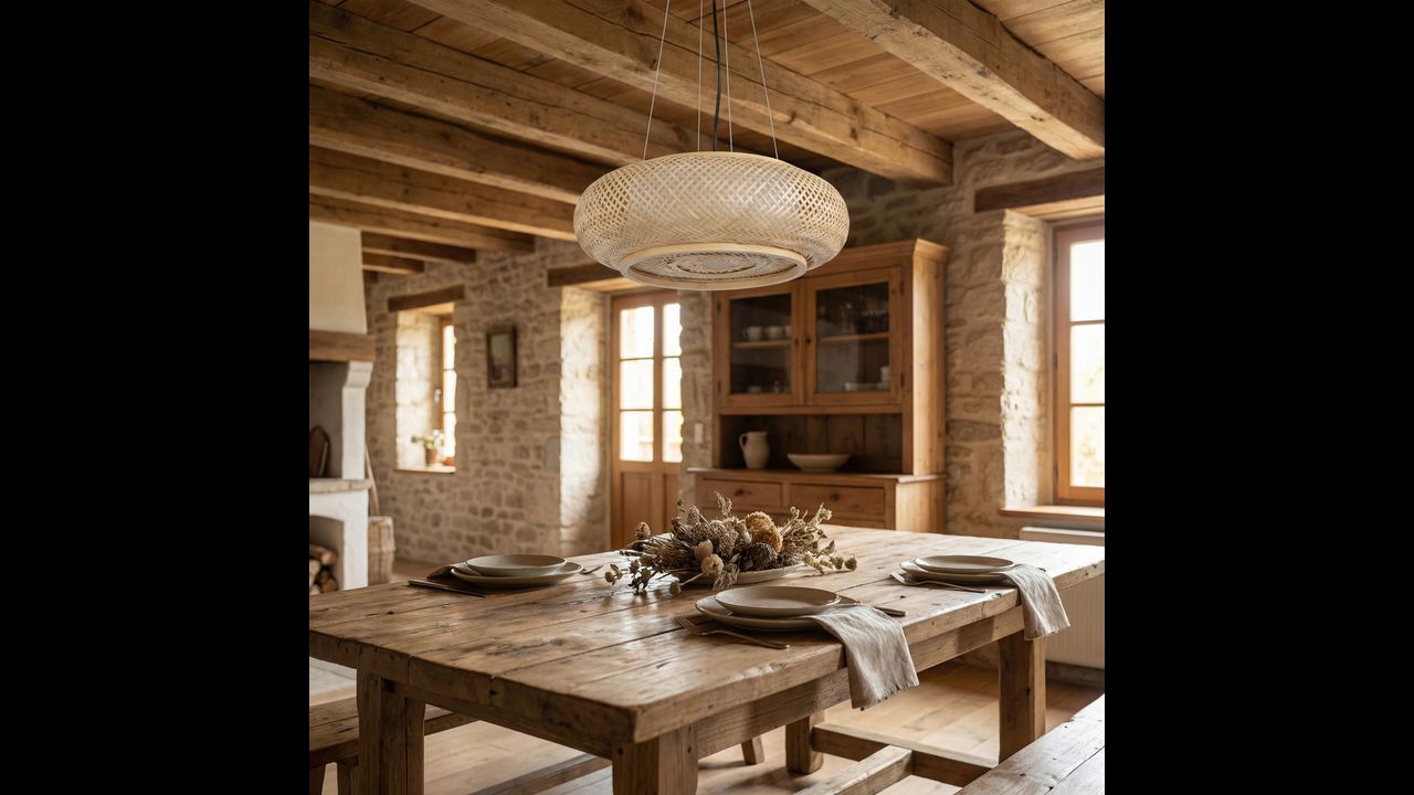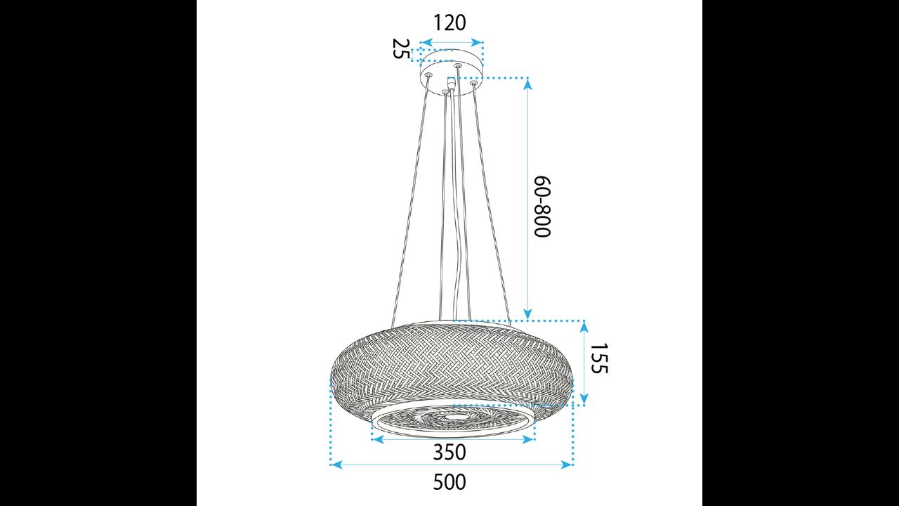 Моделът е оборудван с 3 светлинни точки за крушки с цокъл E27, което осигурява добро осветление и го прави подходящ като основен източник на светлина в хол, трапезария, спалня или над маса. Естествената цветова гама и плетената форма се съчетават отлично с интериори в стил бохо, japandi, рустик и пространства, вдъхновени от природата.