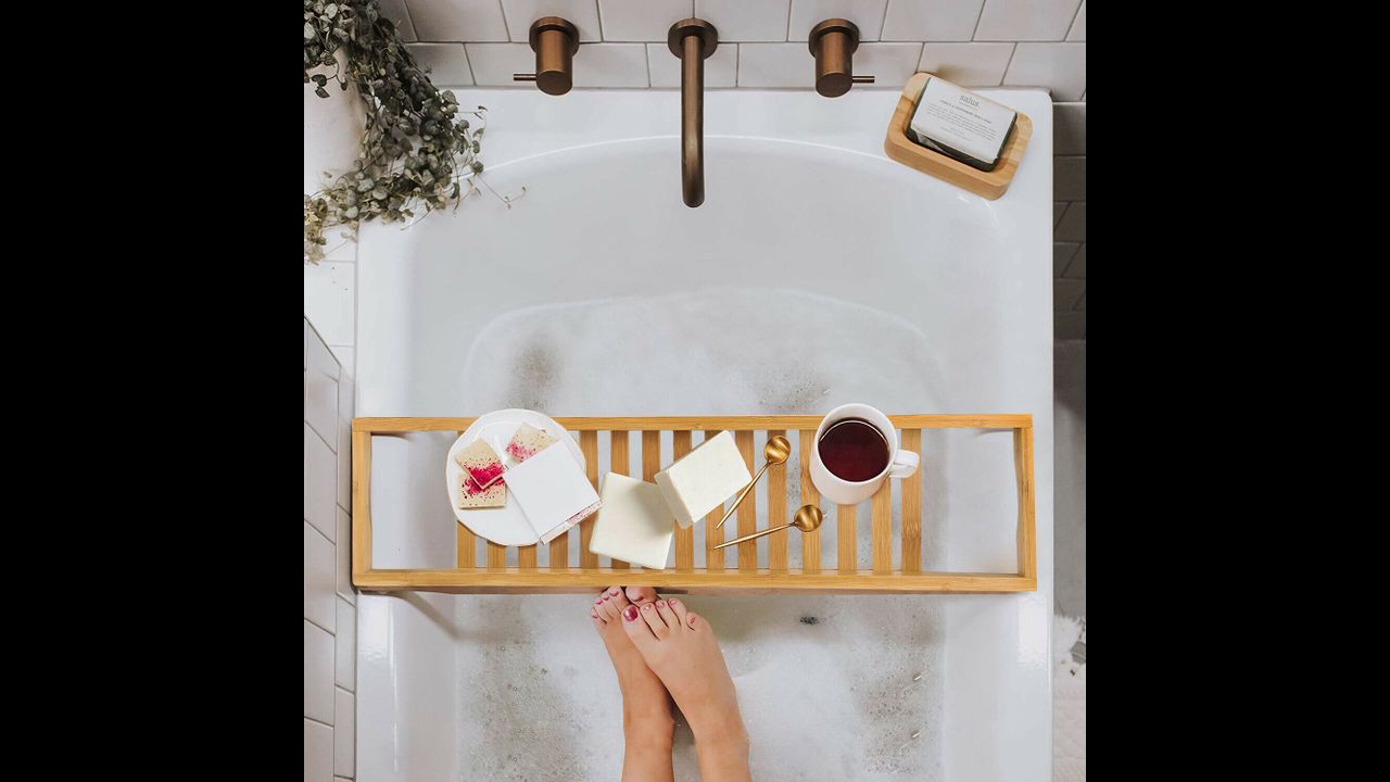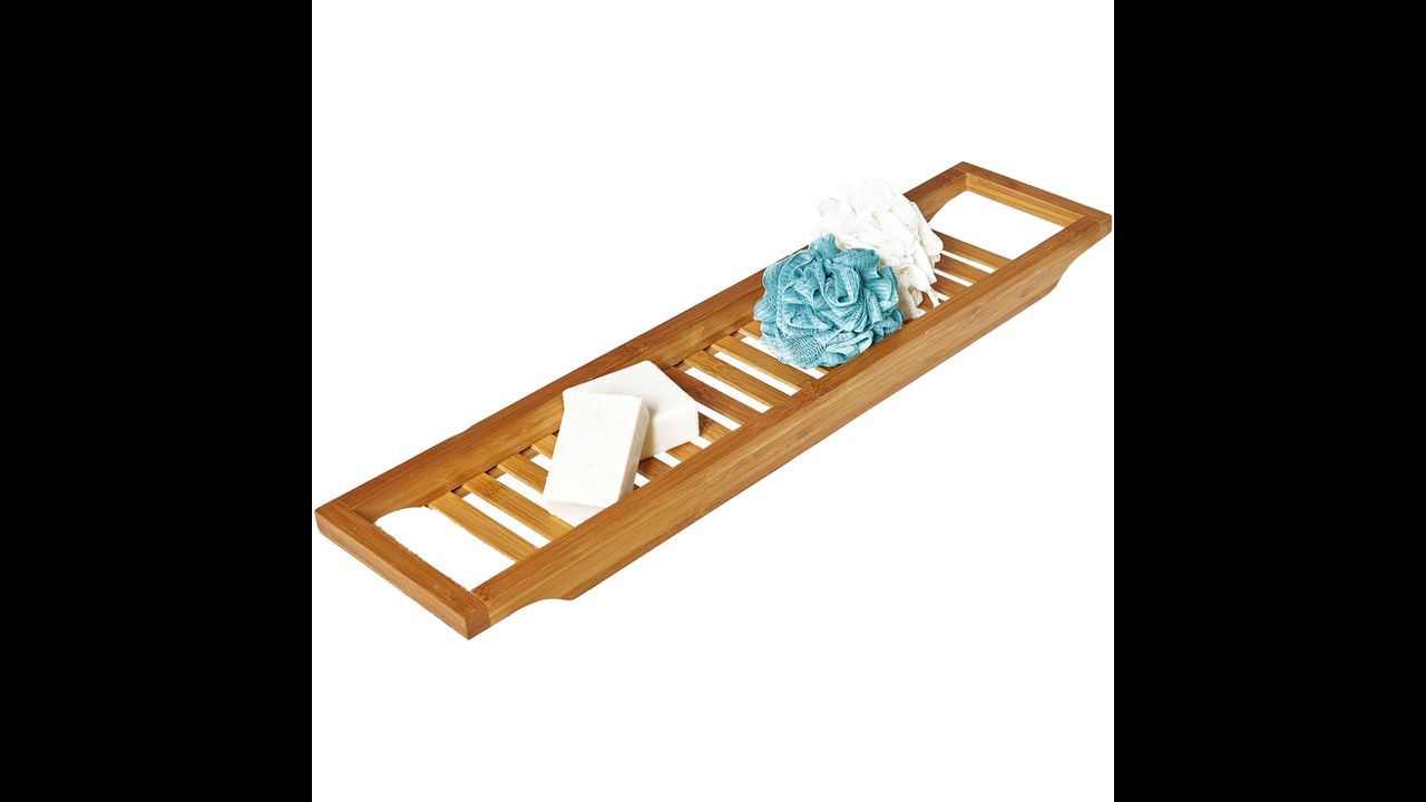 Практичен и издръжлив бамбуков рафт за баня. Той е идеален за съхранение на препарати, козметика и други предмети.