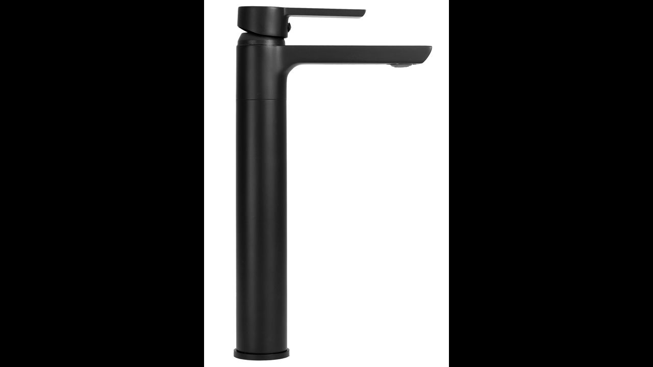 Високият смесител за умивалник Rea Agrus е модел, изработен от висококачествен месинг с черно матово покритие.