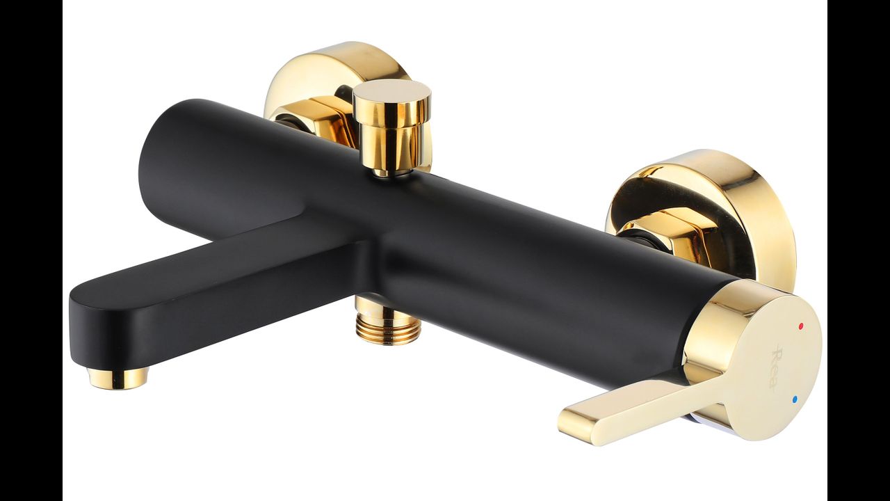 Смесителят за вана Rea Polo е модел, изработен от висококачествен месинг с черно матово покритие и златисто лъскаво покритие.