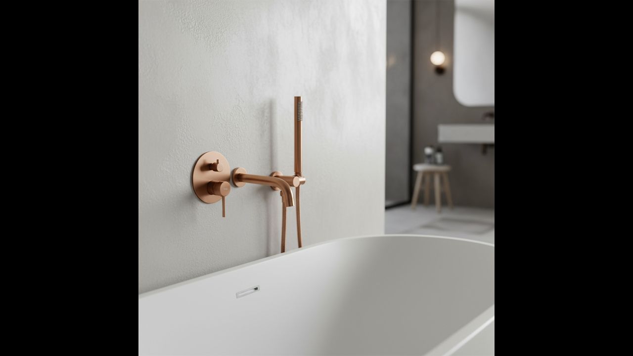 Оценете елегантността и модерния стил, които предлага вградената вана батерия Rea Lungo с покритие Четкава Мед. Това е идеалната комбинация от минималистичен дизайн и иновативна система за монтаж. Изработена от месинг с усъвършенствано PVD покритие, батерията не само подчертава луксозния дизайн на банята, но и осигурява дълготрайна издръжливост и надеждност.
