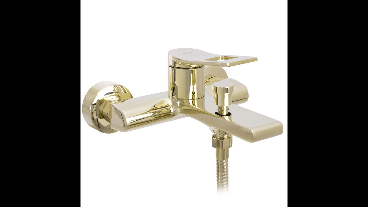 Представяме ви красив, изключително функционален и модерен смесител за вана. Това е продукт, който перфектно ще запълни пространството в банята ви, като същевременно поддържа безупречен външен вид и естетика на интериора. Смесителят е предназначен за монтаж на стена. Той е изработен от месинг с тройно златно покритие. Благодарение на специалната фаза на производство той е издръжлив и лесен за почистване.