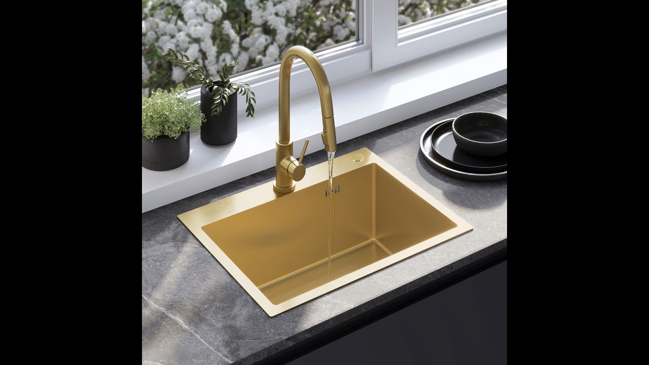 Кухненската мивка със смесителна батерия със своя минималистичен и модерен вид се вписва в дизайна на всяка кухня. Допълнена от смесителна батерия с гъвкав чучур, тя създава пълноценно работно място в мокрото помещение.