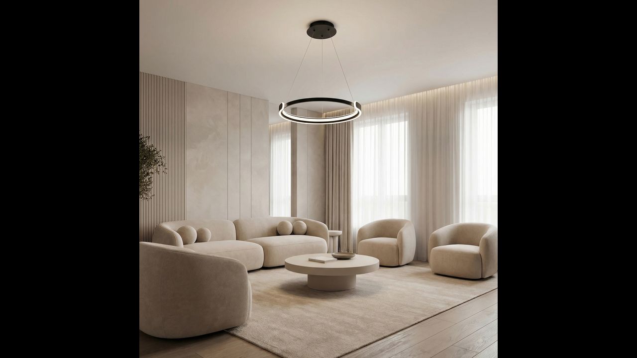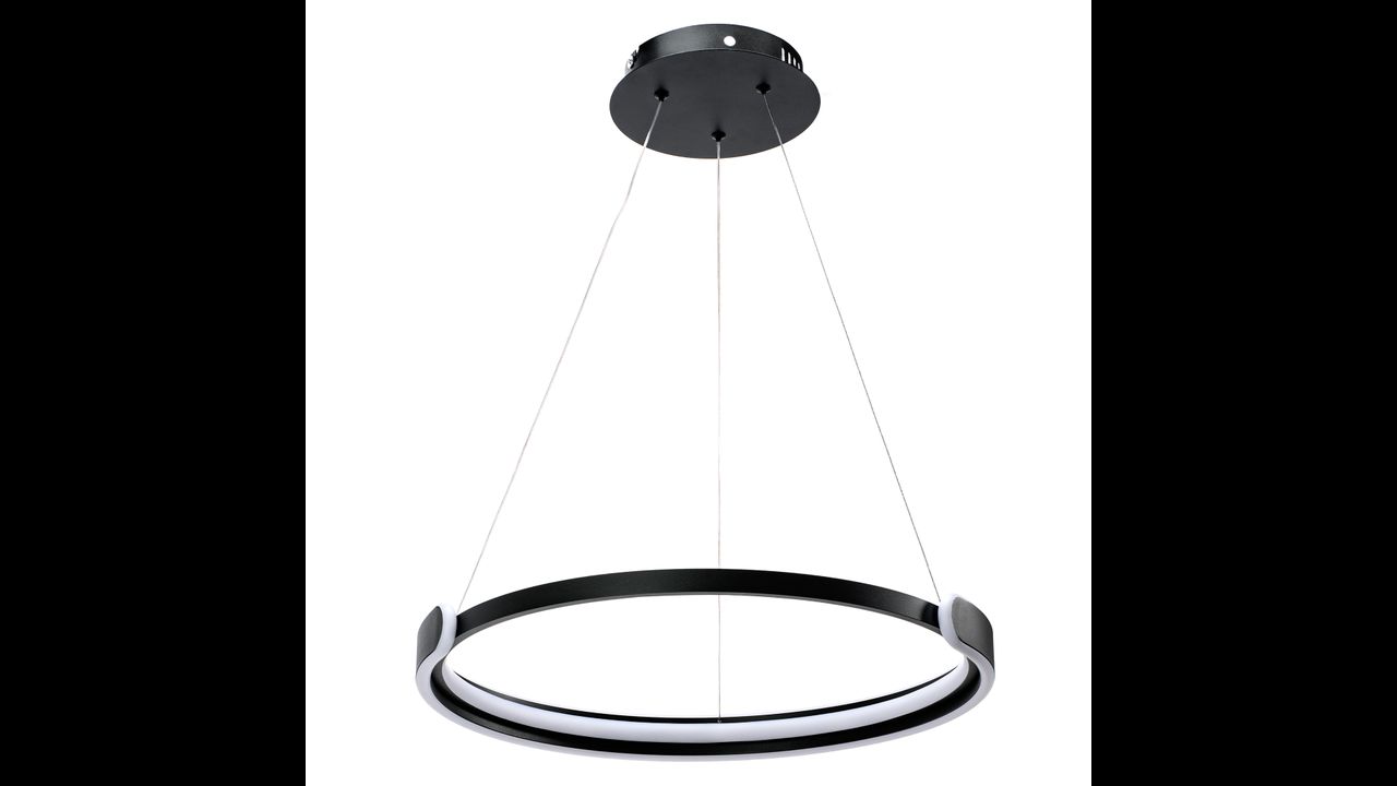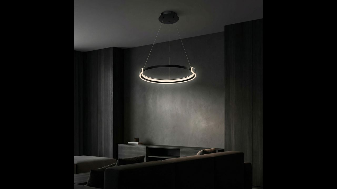 Висящата лампа с модерна и лека форма е елегантно решение за минималистични и съвременни интериори. Кръглата конструкция с фино подчертани детайли създава хармонична и впечатляваща композиция, която привлича вниманието и придава на пространството модерен характер. Черното покритие подчертава изразителността на модела и се вписва отлично в актуалните тенденции.