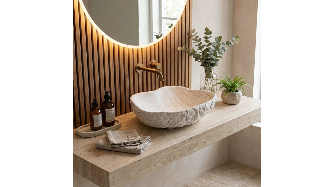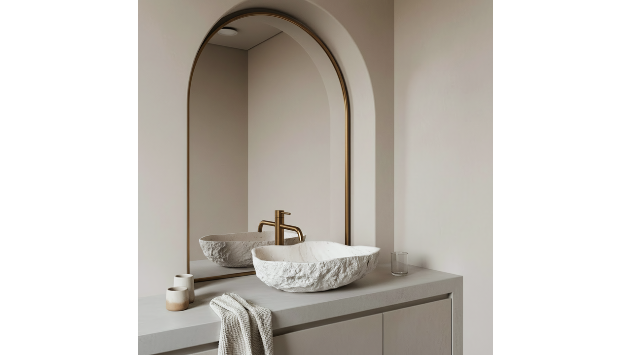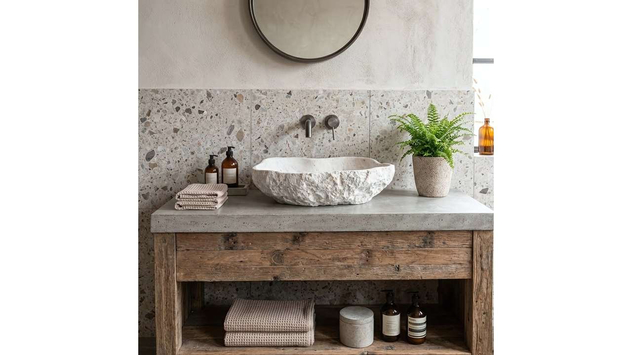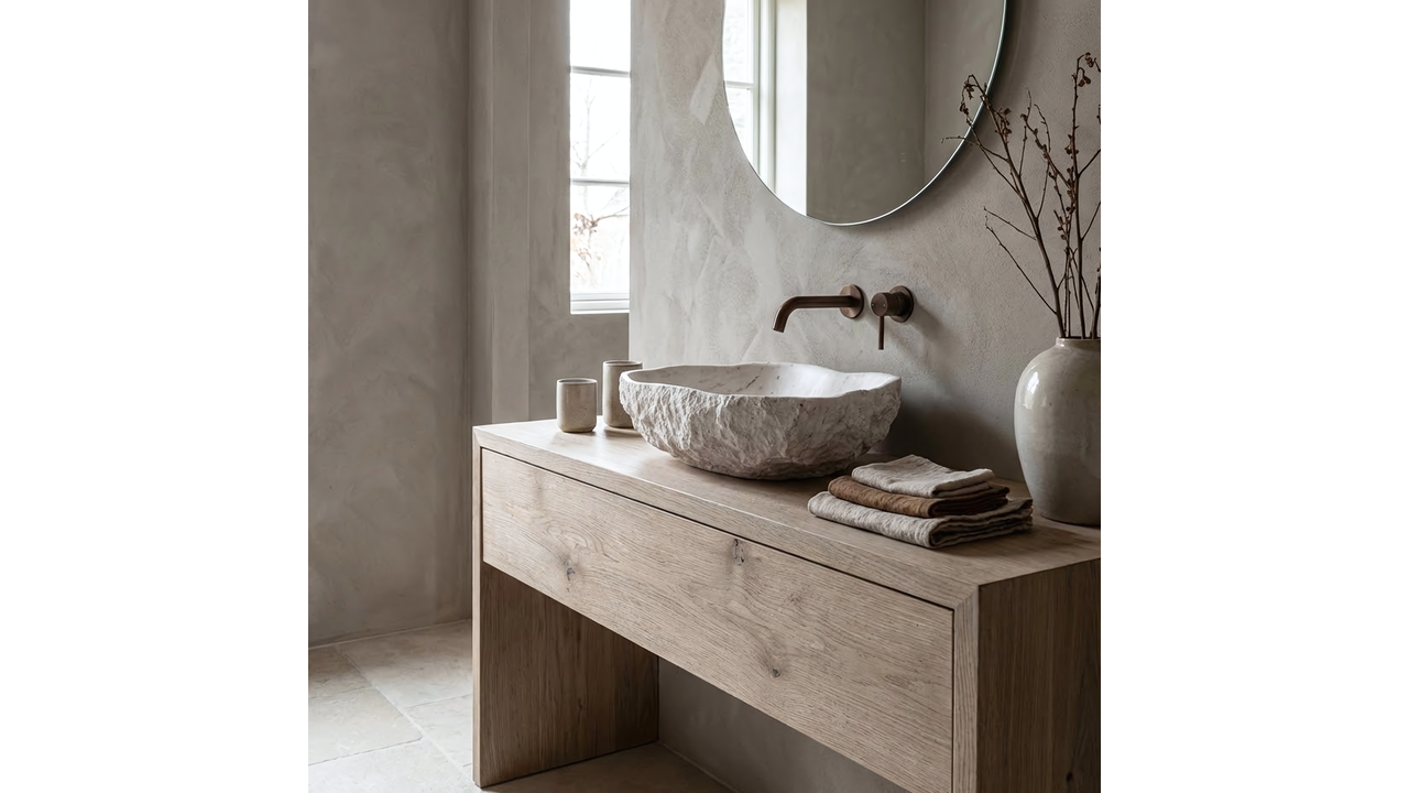 Умивалникът Rea Isla Shiro е отличен избор за бани в стил бохо, spa и модерен. Комбинацията от органична форма и издръжливостта на композита го прави ефектен и практичен елемент, който разчупва геометричната строгост на интериора.