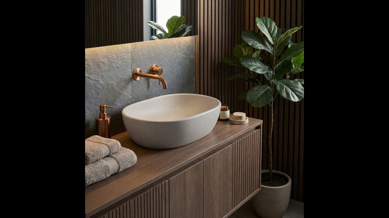 Мивката за плот Amelia Sandy с уникална структура, вдъхновена от естествен камък, е перфектно съчетание от елегантност и сурова красота. Дизайнът й е идеален за бани в стил natural, spa, japandi или бохо.