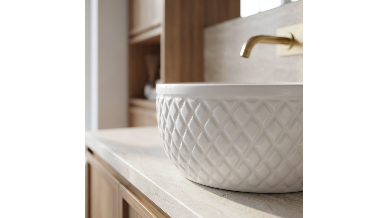 Подчертайте елегантния характер на вашата баня с умивалника за плот Rea Galaxy. Този модел съчетава класическо бяло с декоративна форма, която привлича погледа. Външните стени на купата са украсени с релефна рифелована структура на ромбове, придаваща на керамиката вид на луксозен аксесоар в стил glamour.