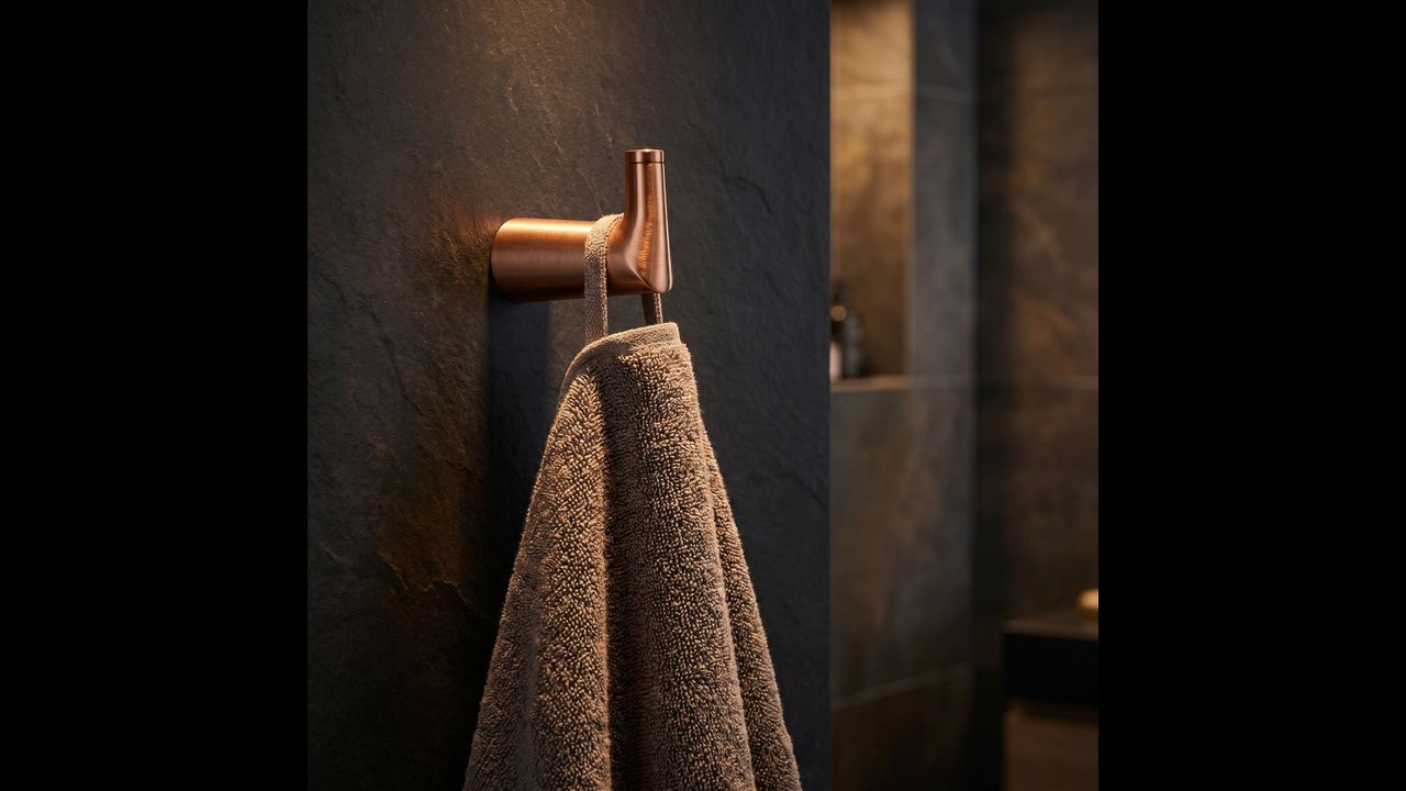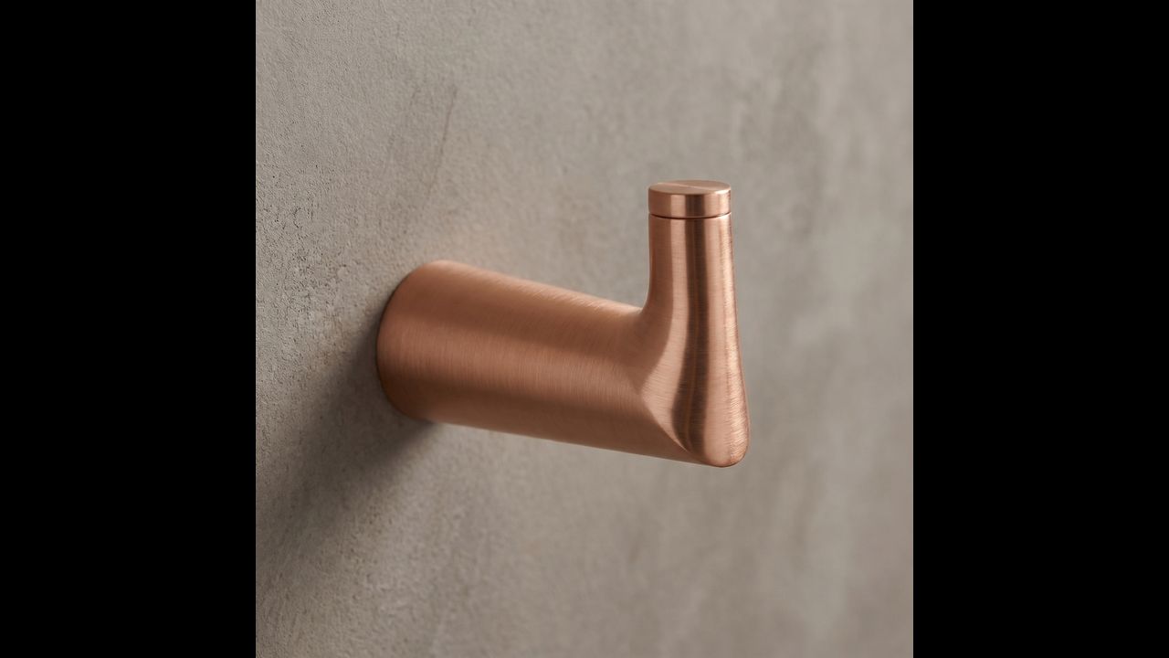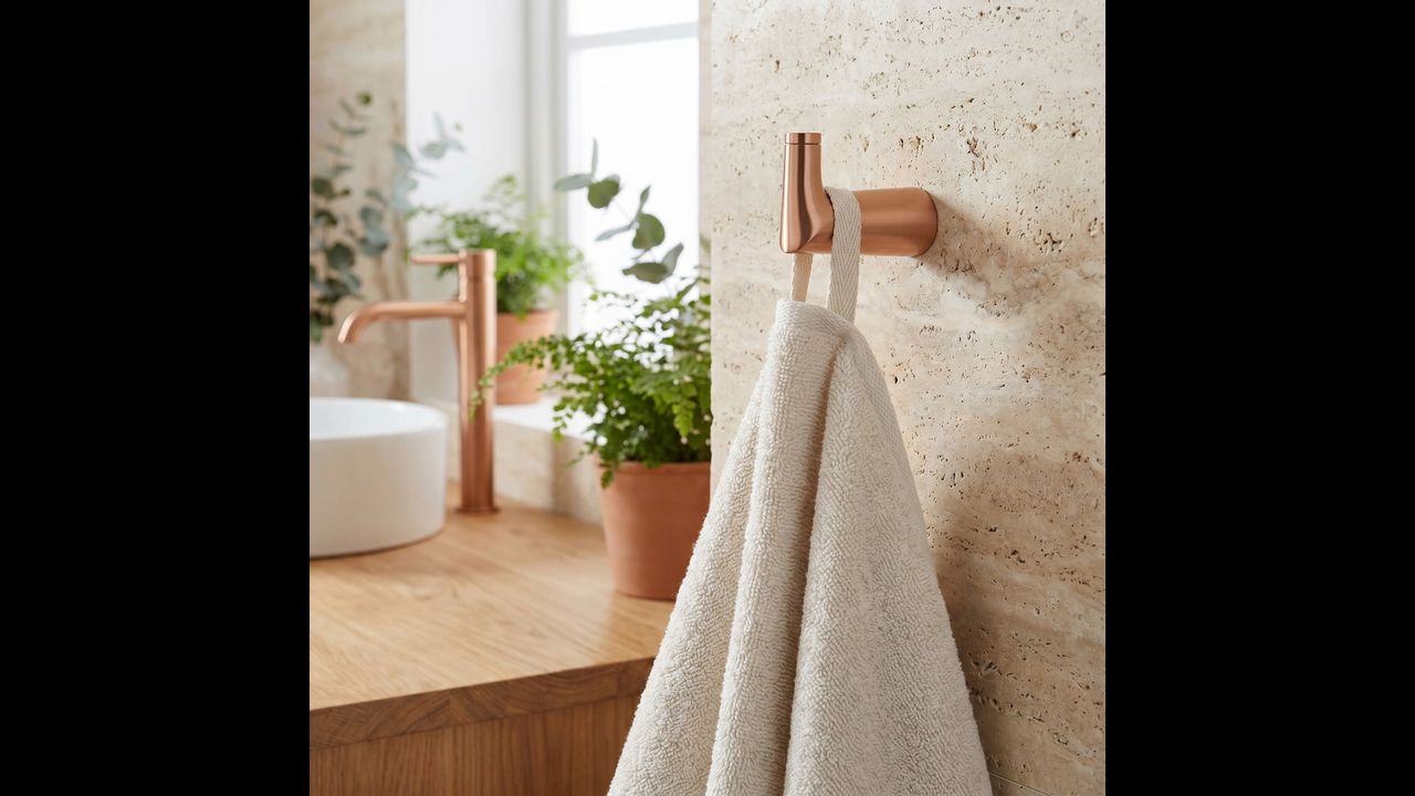 Допълнете интериора на вашата баня с фин и същевременно изключително атмосферен акцент благодарение на единичната закачалка за баня Vibe в цвят четкана мед. Тази кукичка е перфектна комбинация от модерен минимализъм и топъл, луксозен финиш, който внася уют и престижен характер в интериора.