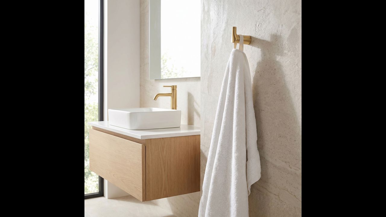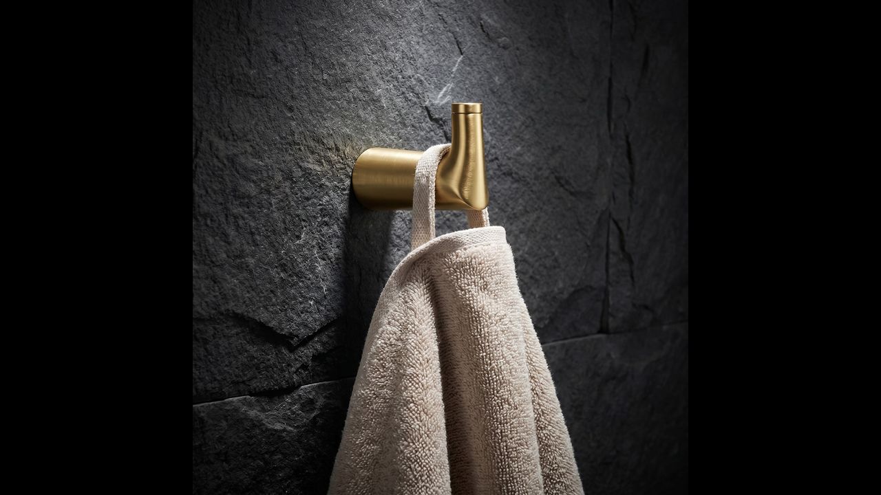 Допълнете интериора на вашата баня с фин и същевременно изключително стилен акцент благодарение на единичната закачалка за баня Vibe в цвят четкано злато. Тази кукичка е перфектна комбинация от модерен минимализъм и луксозен финиш, която ще се наложи във всяка зона за миене или къпане, грижейки се за удобството и естетическия ред.