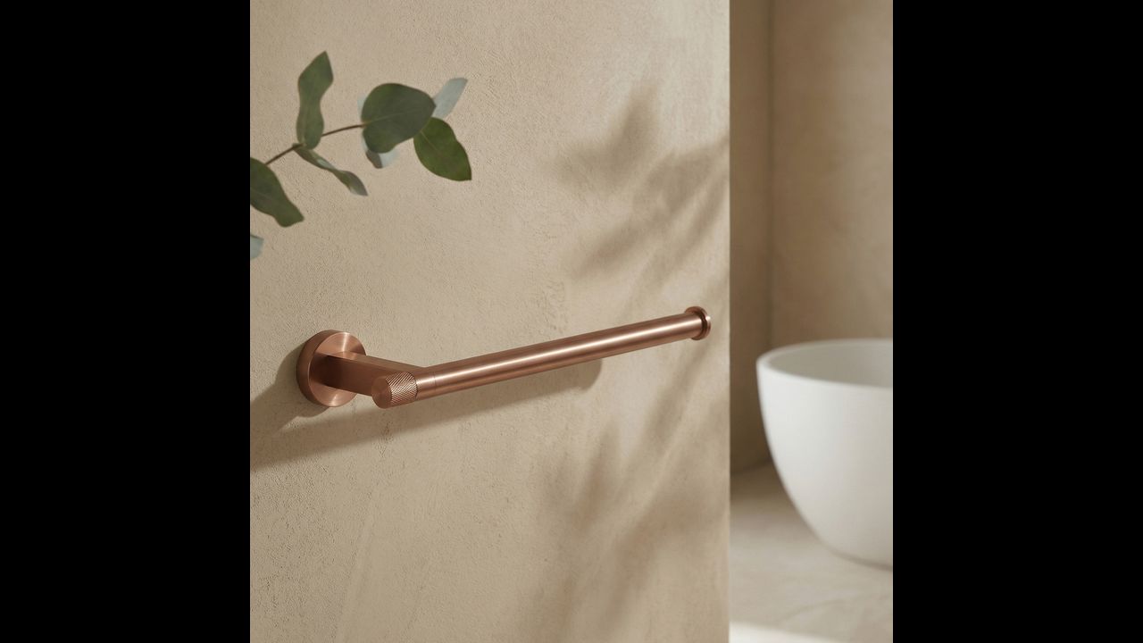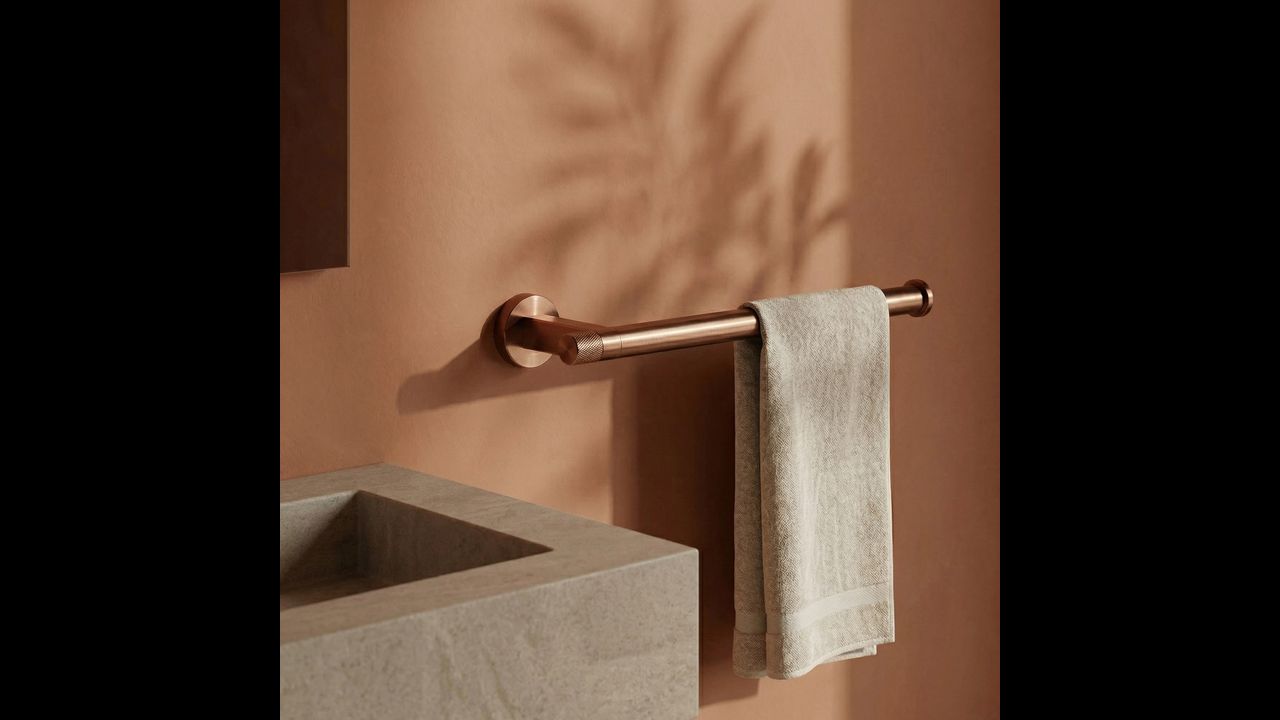 Погрижете се за реда и елегантния вид на вашата баня с закачалката за кърпи Ori в цвят четкана мед. Този стилен и изключително функционален аксесоар се вписва перфектно в модерните аранжировки, съчетавайки изчистена форма с изтънчен бижутериен детайл.
