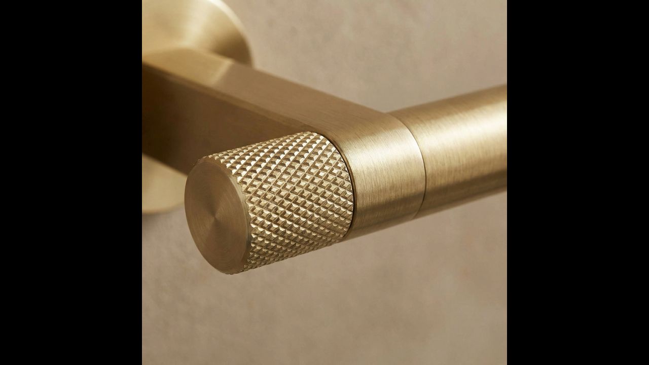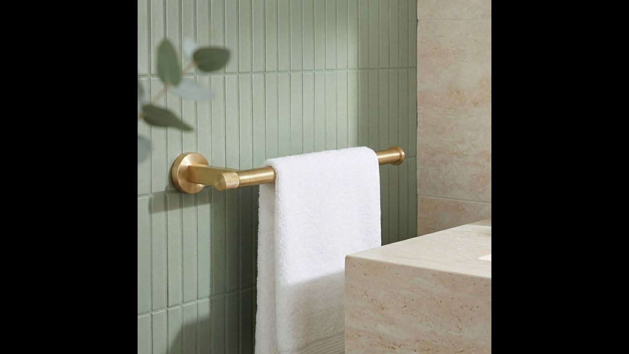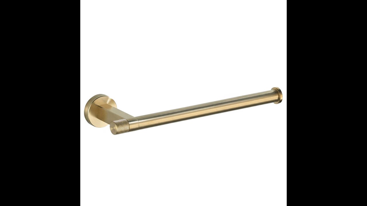 Погрижете се за реда и елегантния вид на вашата баня с закачалката за кърпи Ori в цвят четкано злато. Този стилен и изключително функционален аксесоар се вписва перфектно в модерните аранжировки, съчетавайки изчистена форма с изтънчен бижутериен детайл.