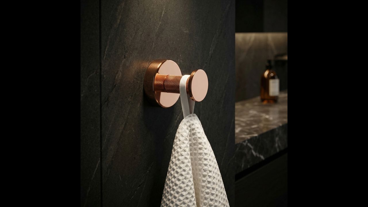 Единичната закачалка Modern е отличен избор за хора, които ценят хармонията и модерния дизайн в своя интериор. Перфектна във всеки детайл, със субтилен меден блясък, тя със сигурност ще бъде украшение за вашата баня, добавяйки ѝ класа. Избирайки този модел, вие залагате на практично решение, което съчетава луксозен външен вид с ежедневно удобство при употреба.